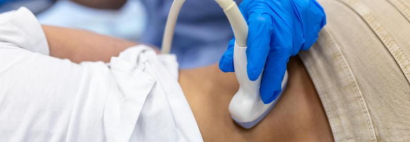 - Врач с помощью датчика изучает изображение обеих почек на мониторе.